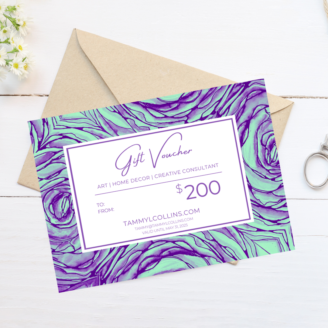Gift Certificate – $200 Elevate their creative journey with our $200 Gift Certificate. This certificate is a passport to the boundless world of artistry and imagination. Whether they envision an original artwork, a unique installation, or a bespoke brand marketing piece, Tammy L. Collins will bring their creative dreams to life. This gift is a treasure for anyone seeking to unleash their inner artist.