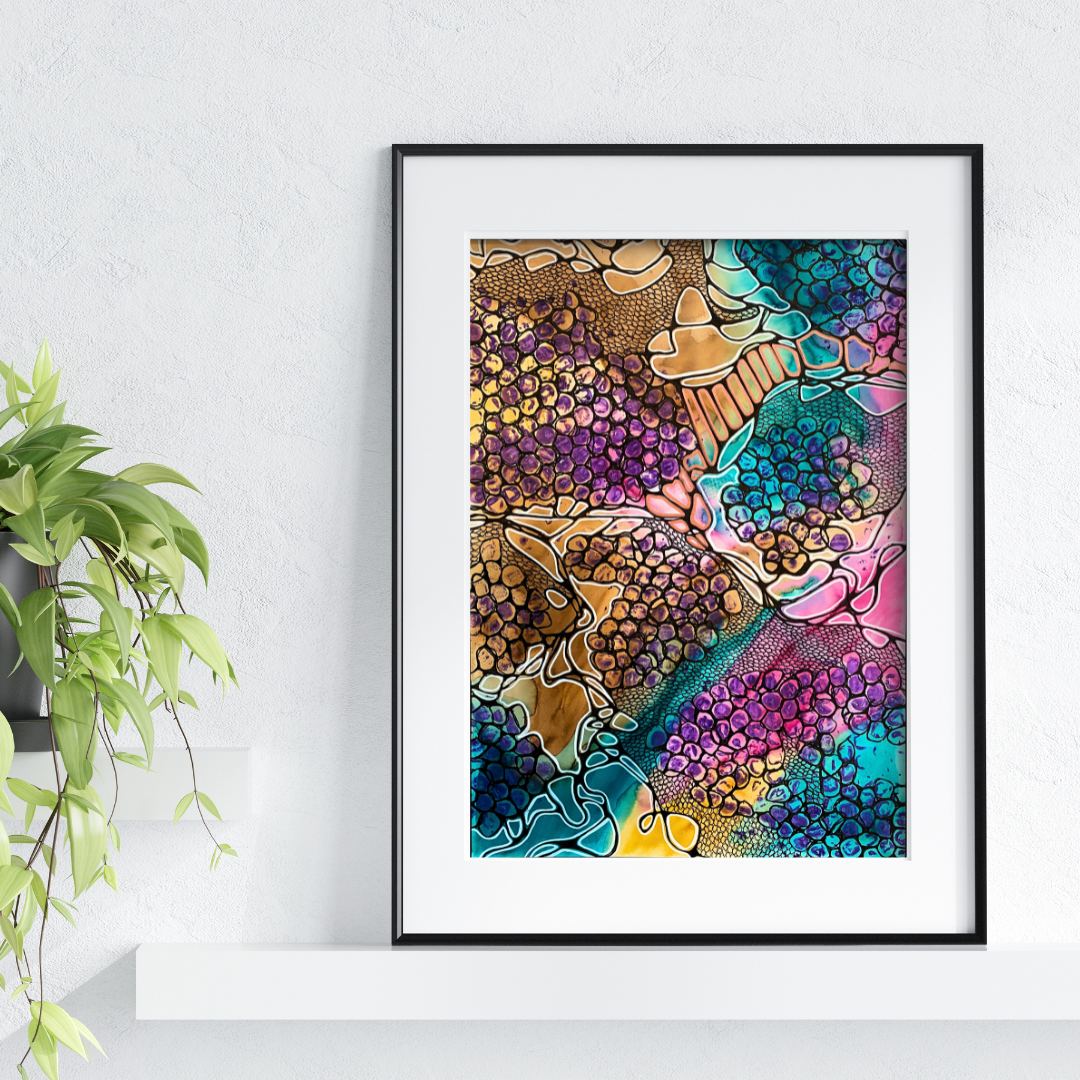 Like all of her original creations, “Rainbow Lace” is offered unframed, allowing you the freedom to select a frame that complements your personal style. This exquisite artwork is priced at $187, making it an affordable way to add a burst of creativity and color to your living or workspace.